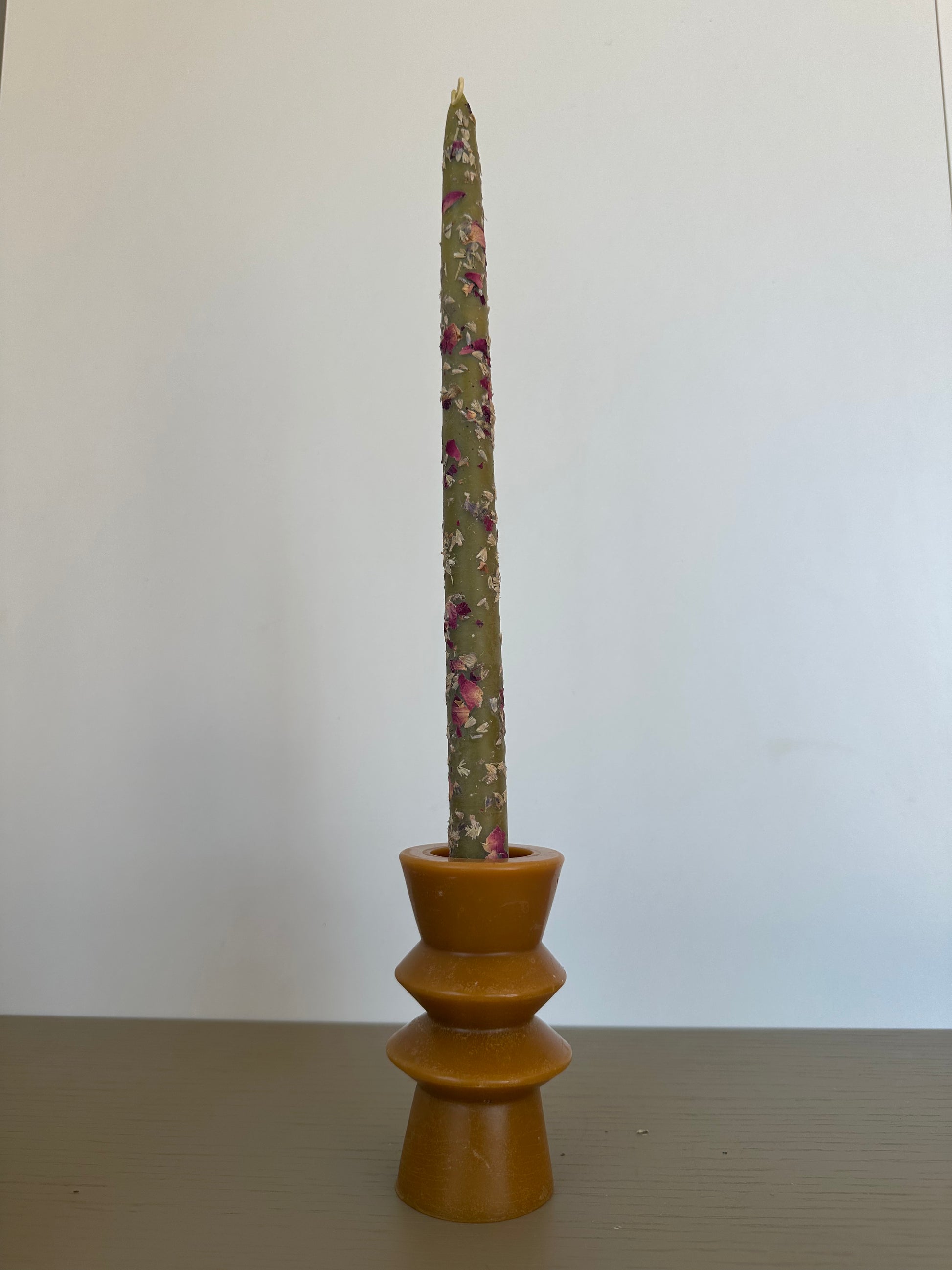 a unique way to present your taper candles in a beeswax stand, come is single or double tier these are made with pure nz manuka beeswax, comes in black, green and brown