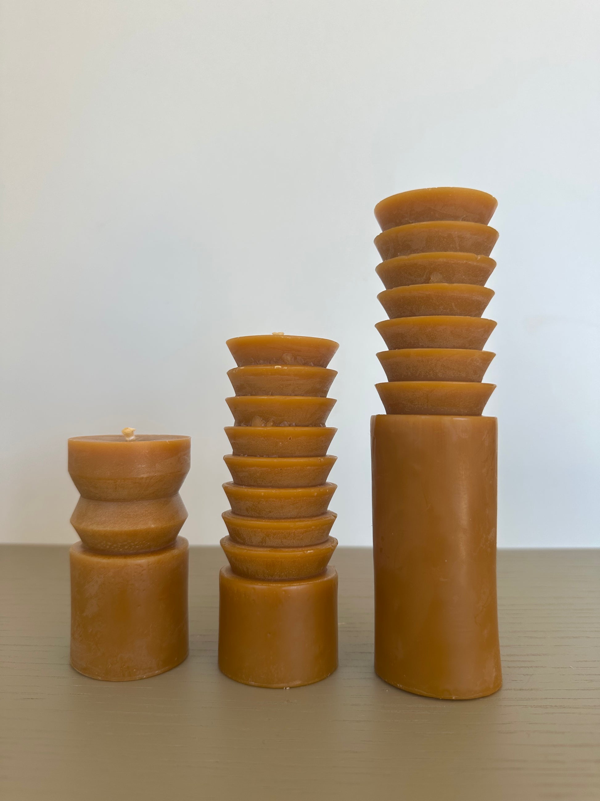 made from pure 100% manuka beeswax with a pure cotton wick, also come in natural gold or green, orange and brown by using small amount of candles dye, these candles have no synthetic fragrances and no added waxes