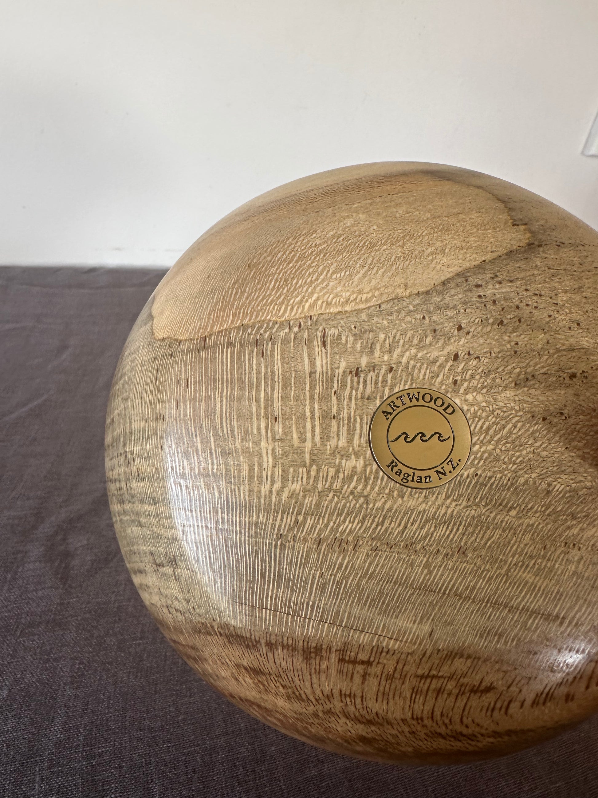 another beautiful bespoke 'London Plane' wooden bowl which has been lathe turned by Artwood Raglan filled with pure manuka beeswax, using pure cotton wicks