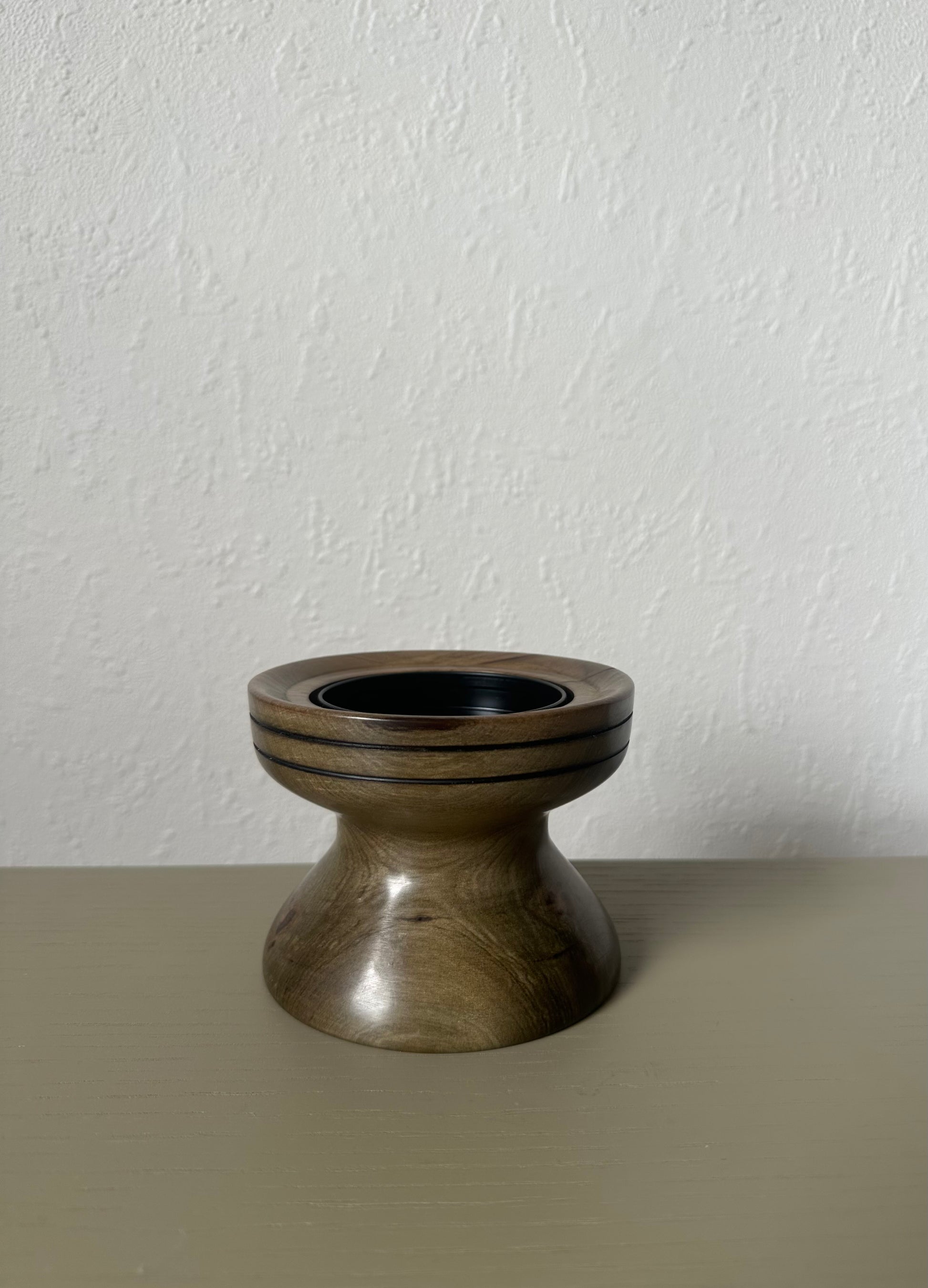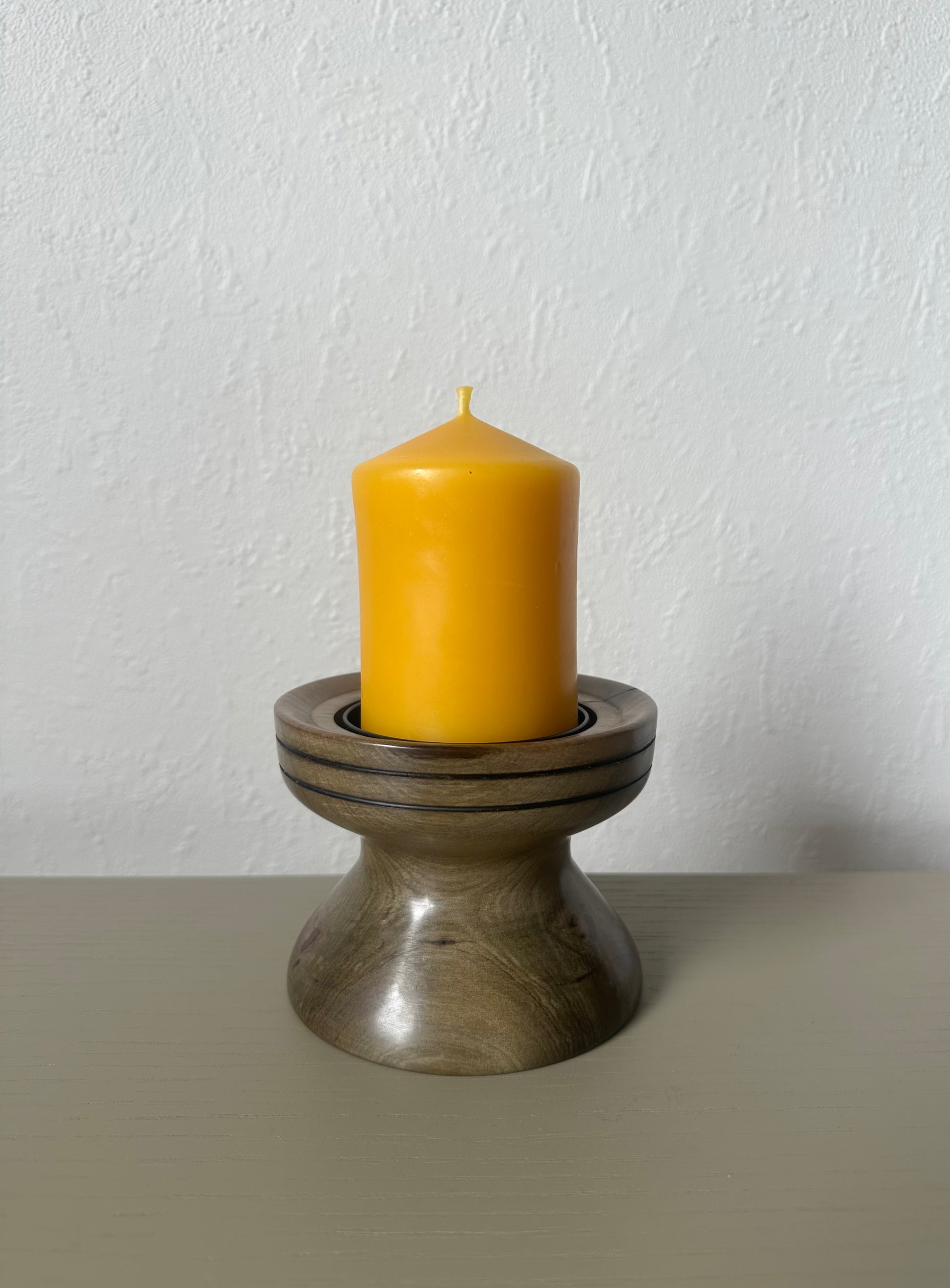 A beautiful bespoke 'Swamp Kauri' wood candle stand which has been carefully lathe turned by Artwood Raglan of New Zealand