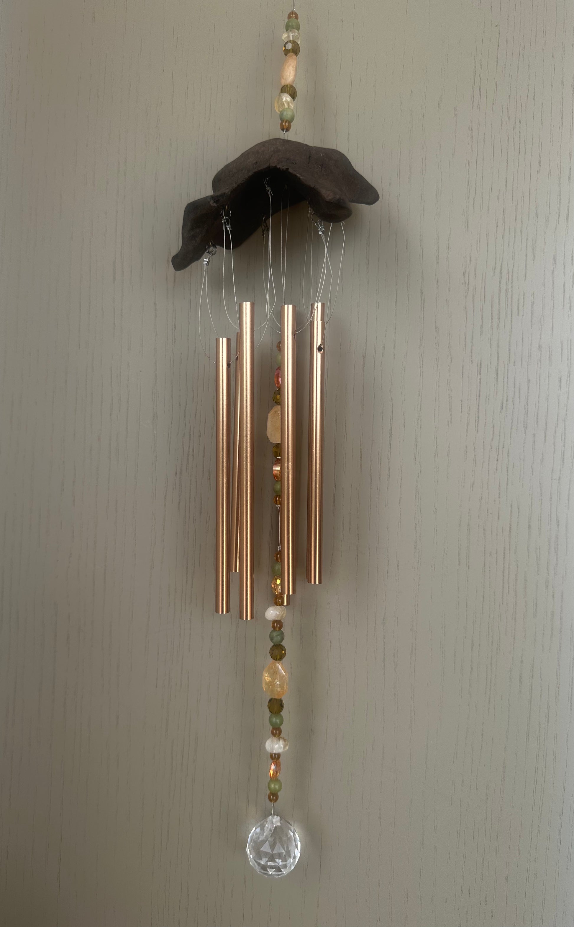 Made Pohutukawa driftwood beach combed of the east cape of New Zealand together with a mix of chimes, citrine gemstone, aventurine & glass beads